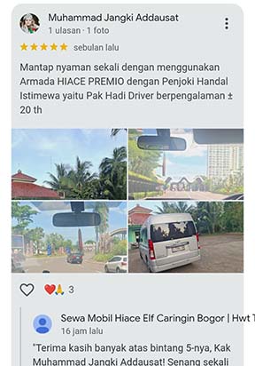 Penyewaan harian untuk berkeliling tempat wisata atau keperluan bisnis di dalam area Jakarta dan sekitarnya (Jabodetabek)